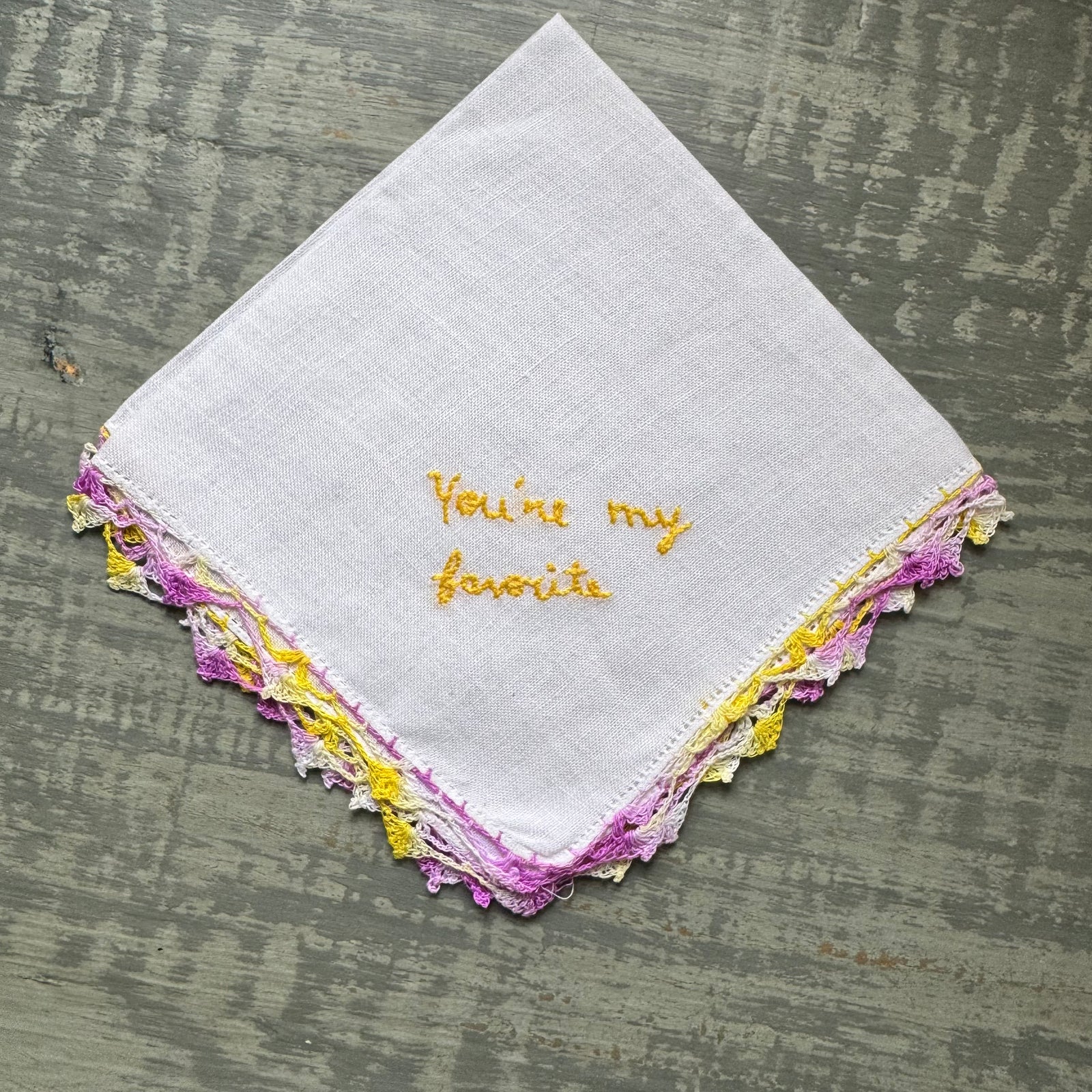 $ 85.00You are my Favorite - Handkerchief Yellow and Purple